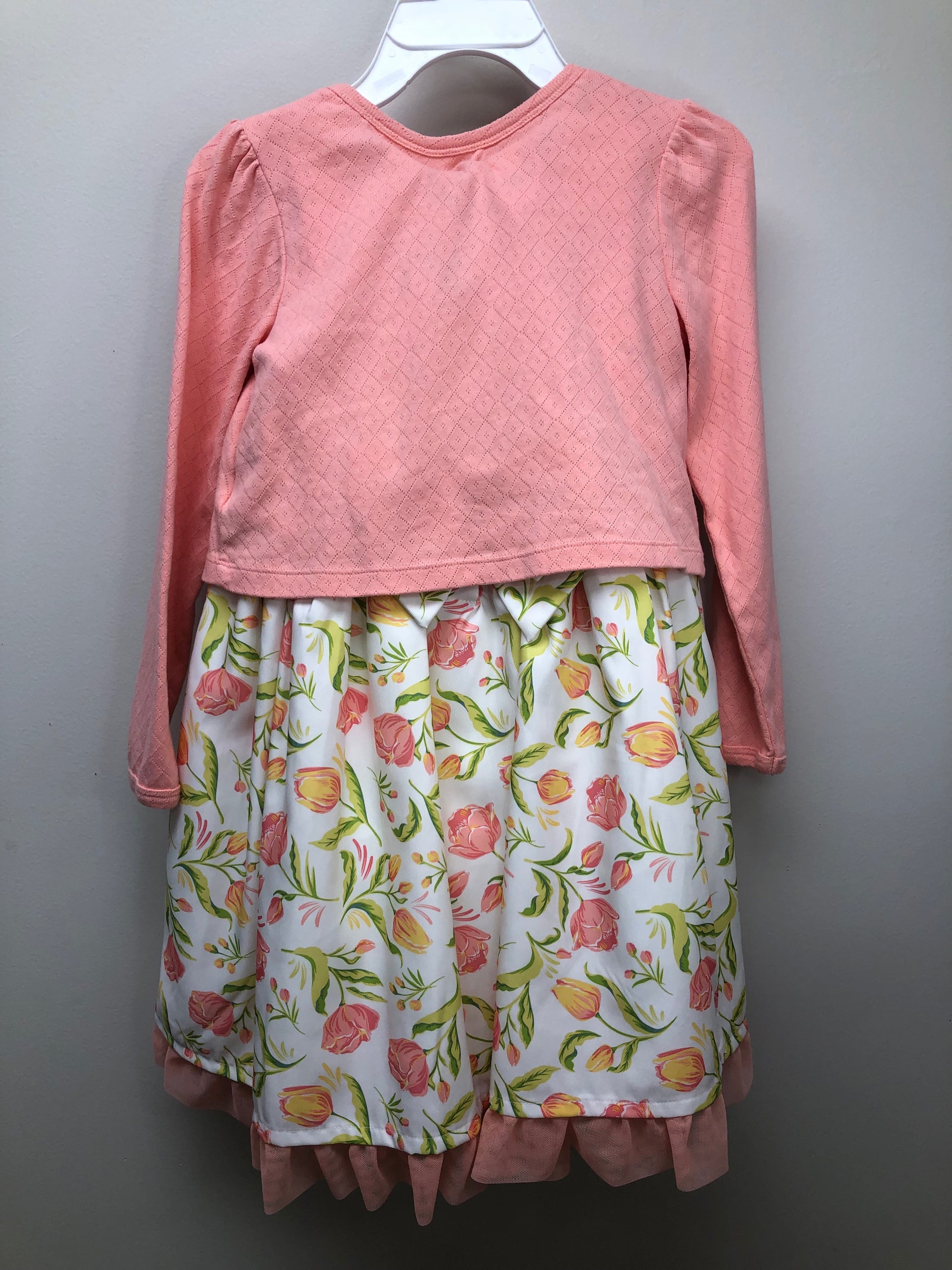 Tahari Child Size 7 peach floral Dress